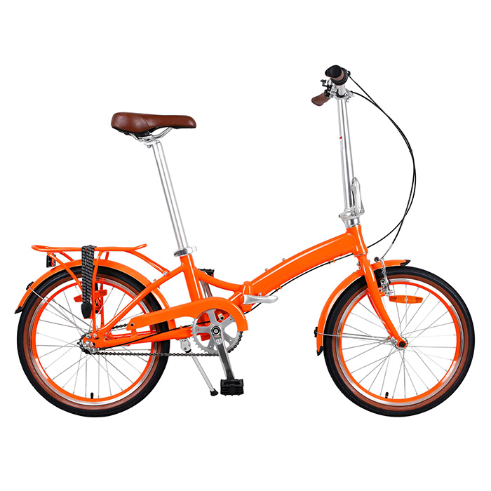 Дисковый тормоз на заднем колесе, жесткая вилка, двойной алюминиевый обод и сигнальная подсветка. Рама с подножкой улучшает устойчивость велосипеда в сложенном виде. Одна скоростная передача обеспечивает равномерный шаг велосипеда.